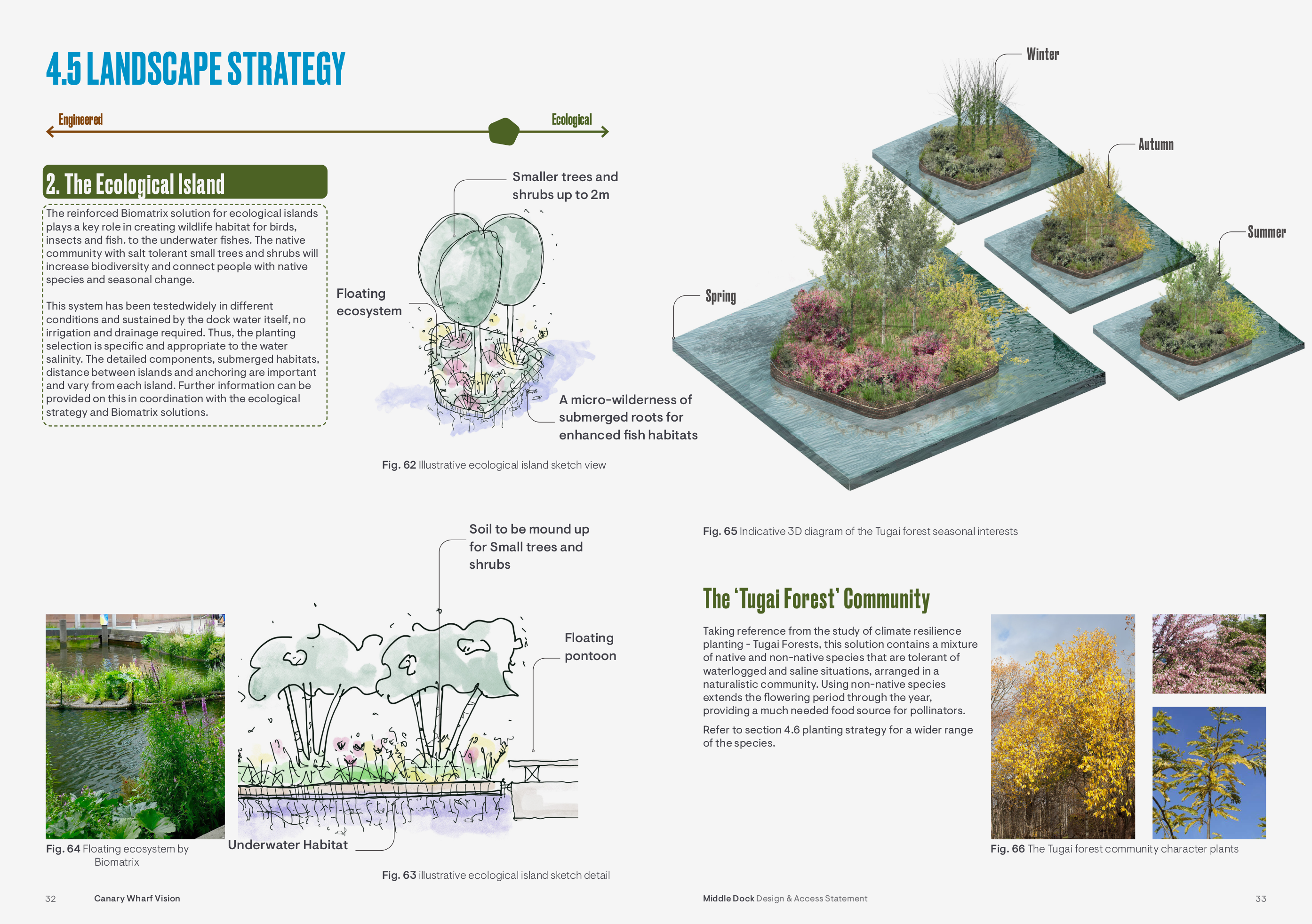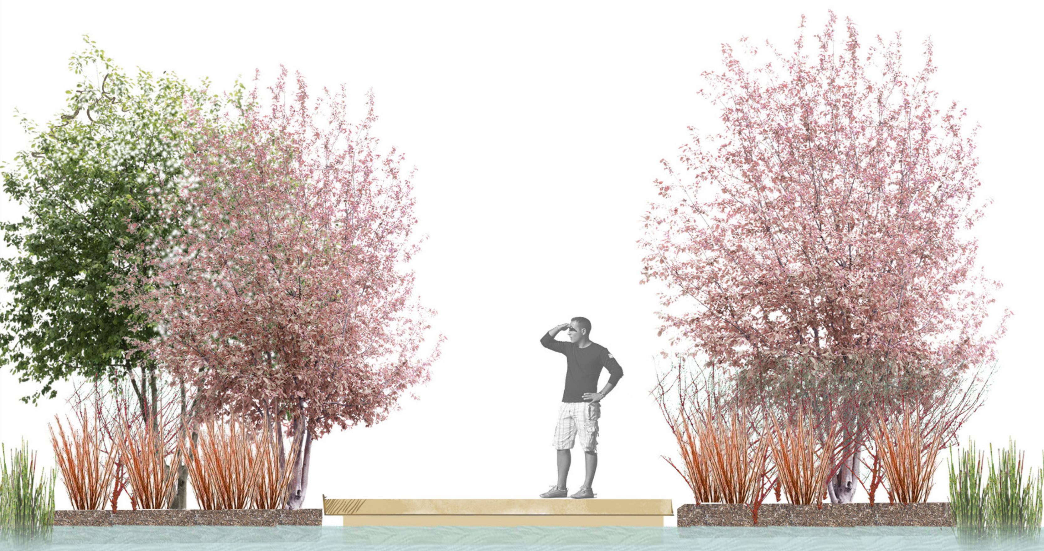 The project transforms a 19th-century dock into a living, climate-resilient urban landscape where planting and ecology define the character of the place. I developed a palette of plant species resilient to the dock’s brackish water conditions, establishing layered, ecologically informed communities across floating platforms, terraces, and dock edges. The planting supports biodiversity, aquatic life, and a strong seasonal structure while maintaining visual quality throughout the year.